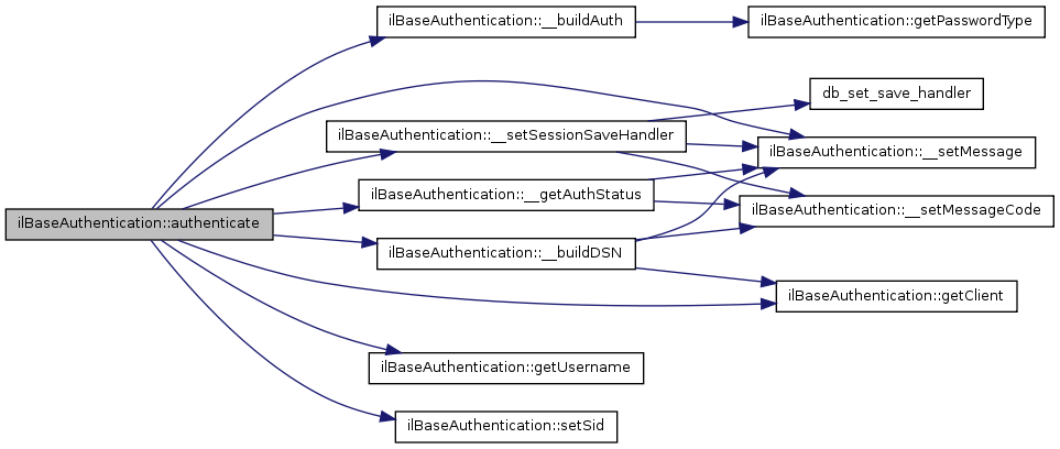 Here is the caller graph for this function:| ilBaseAuthentication::authenticate | ( | ) |