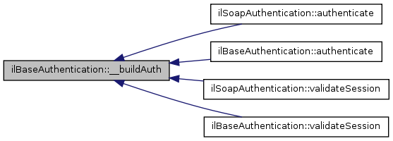 Here is the caller graph for this function:| ilBaseAuthentication::__buildDSN | ( | ) |