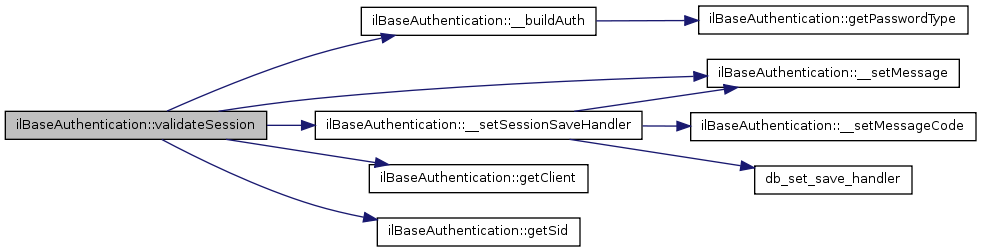 Here is the call graph for this function:| ilBaseAuthentication::validateSession | ( | ) |