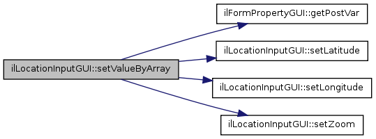 Here is the caller graph for this function:| ilLocationInputGUI::setValueByArray | ( | $ | a_values | ) |