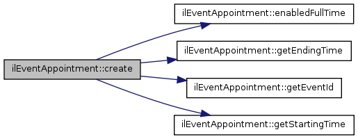 Here is the call graph for this function:| ilEventAppointment::create | ( | ) |