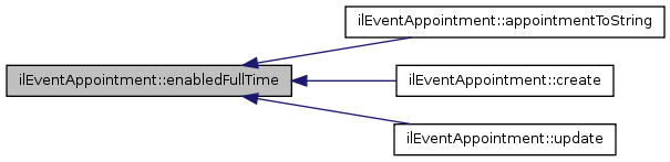 Here is the call graph for this function:| ilEventAppointment::enabledFullTime | ( | ) |