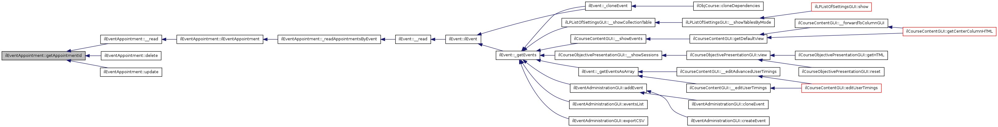 Here is the call graph for this function:| ilEventAppointment::getAppointmentId | ( | ) |