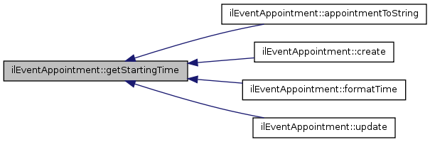 Here is the caller graph for this function:| ilEventAppointment::getStartingTime | ( | ) |