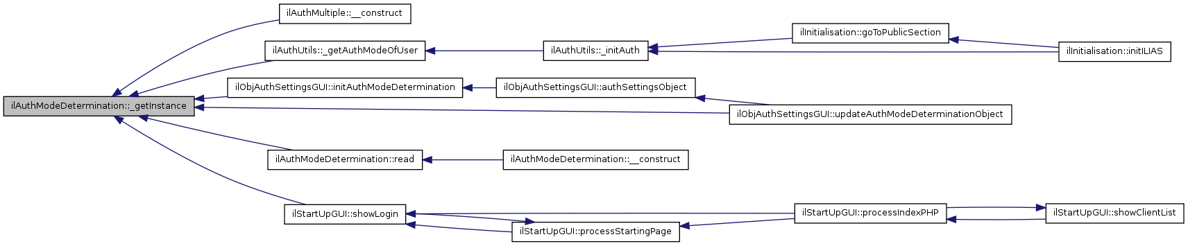Here is the call graph for this function:| static ilAuthModeDetermination::_getInstance | ( | ) | [static] |