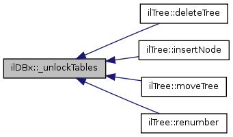 Here is the caller graph for this function:| ilDBx::_unlockTables | ( | ) |