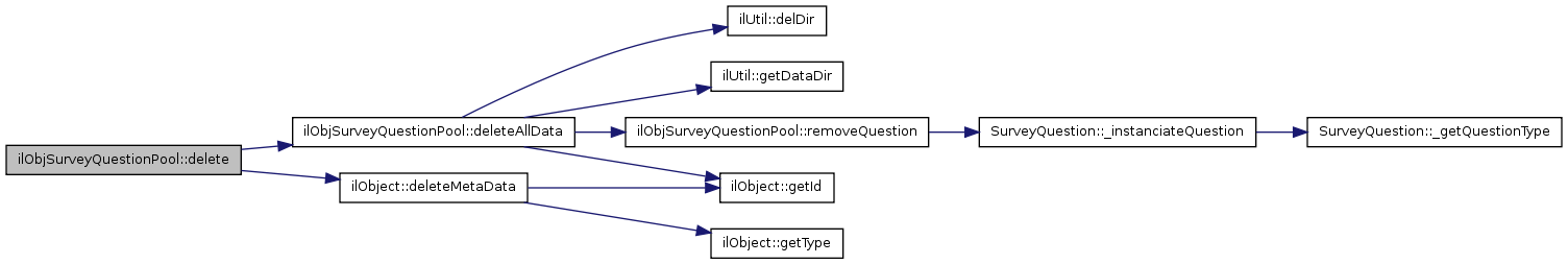 Here is the call graph for this function:| ilObjSurveyQuestionPool::removeQuestion | ( | $ | question_id | ) |
