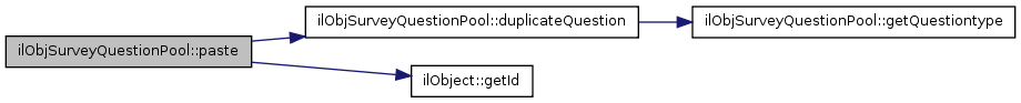 Here is the call graph for this function:| ilObjSurveyQuestionPool::paste | ( | $ | question_id | ) |