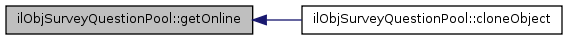 Here is the call graph for this function:| ilObjSurveyQuestionPool::$online |