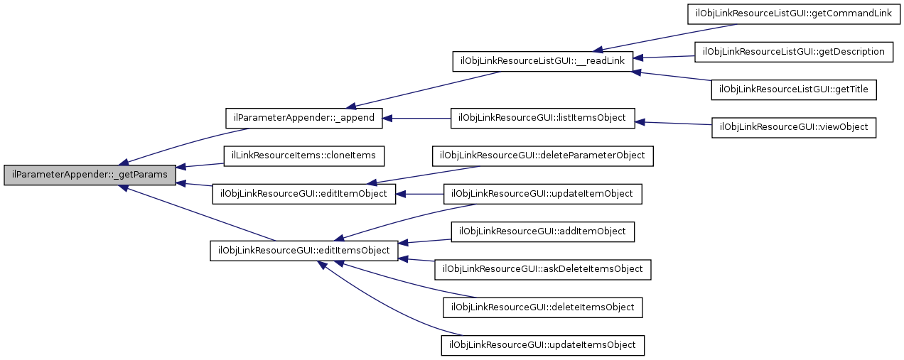 Here is the caller graph for this function:| ilParameterAppender::_getParams | ( | $ | a_link_id | ) |
