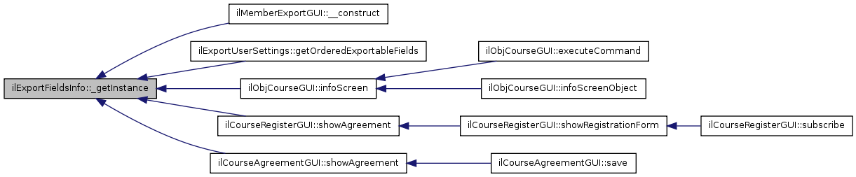 Here is the call graph for this function:| static ilExportFieldsInfo::_getInstance | ( | ) | [static] |