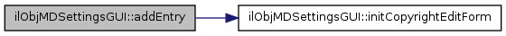 Here is the call graph for this function:| ilObjMDSettingsGUI::addEntry | ( | ) |