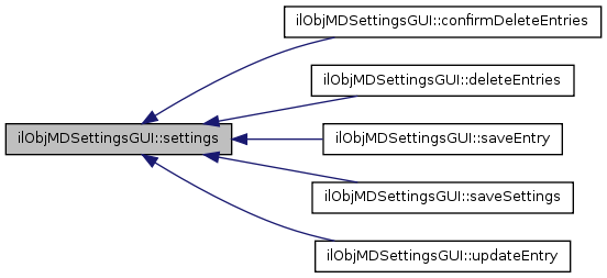 Here is the call graph for this function:| ilObjMDSettingsGUI::settings | ( | ) |