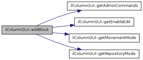 Here is the call graph for this function:| ilColumnGUI::addBlock | ( | ) |