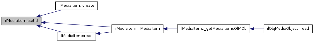 Here is the caller graph for this function:| ilMediaItem::setMobId | ( | $ | a_mob_id | ) |