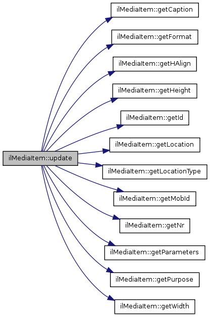 Here is the caller graph for this function:| ilMediaItem::update | ( | ) |