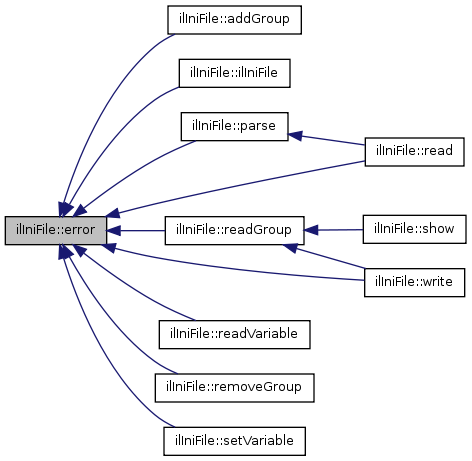 Here is the caller graph for this function:| ilIniFile::getError | ( | ) |