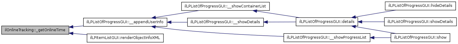 Here is the caller graph for this function:| ilOnlineTracking::_getOnlineTime | ( | $ | a_user_id | ) |
