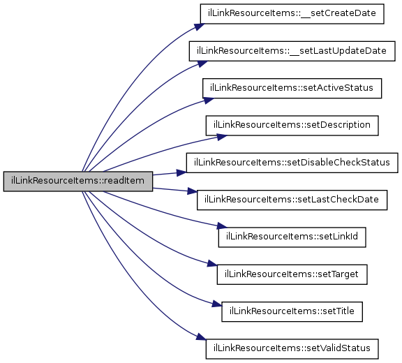 References $res, __setCreateDate(), __setLastUpdateDate(), setActiveStatus(), setDescription(), setDisableCheckStatus(), setLastCheckDate(), setLinkId(), setTarget(), setTitle(), and setValidStatus().