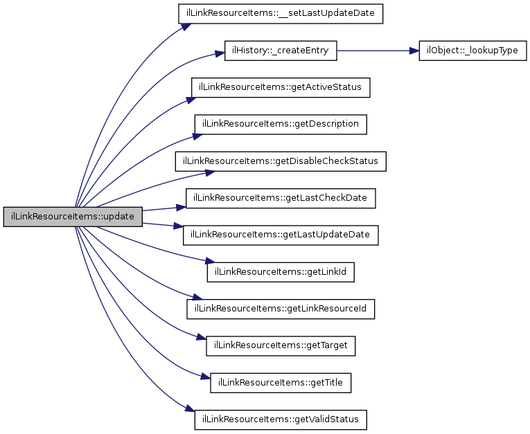 Here is the caller graph for this function:| ilLinkResourceItems::update | ( | $ | a_update_history = true |