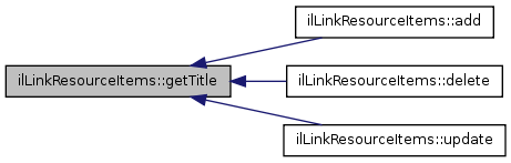 Here is the caller graph for this function:| ilLinkResourceItems::getTitle | ( | ) |