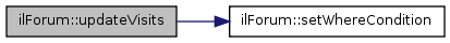 Here is the caller graph for this function:| ilForum::updateVisits | ( | $ | ID | ) |