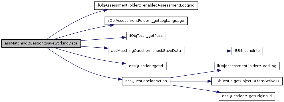 Here is the call graph for this function:| assMatchingQuestion::saveWorkingData | ( | $ | active_id, | |