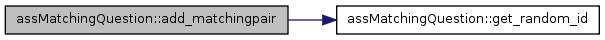 Here is the call graph for this function:| assMatchingQuestion::addMatchingPair | ( | $ | answertext, | |