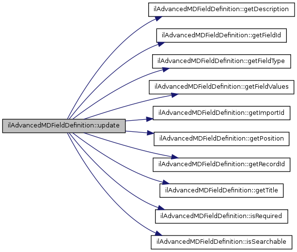 Here is the call graph for this function:| ilAdvancedMDFieldDefinition::update | ( | ) |