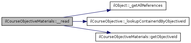 Here is the call graph for this function:| ilCourseObjectiveMaterials::__read | ( | ) |