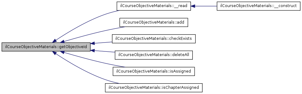 Here is the caller graph for this function:| ilCourseObjectiveMaterials::getObjectiveId | ( | ) |