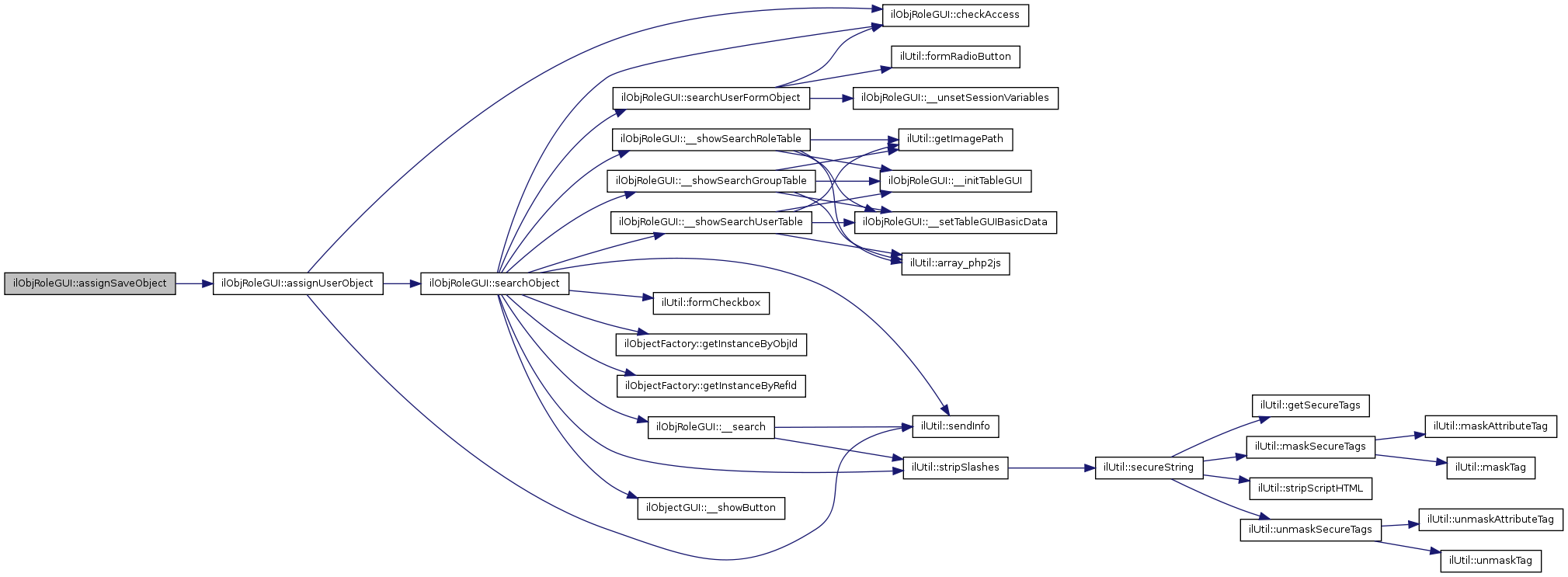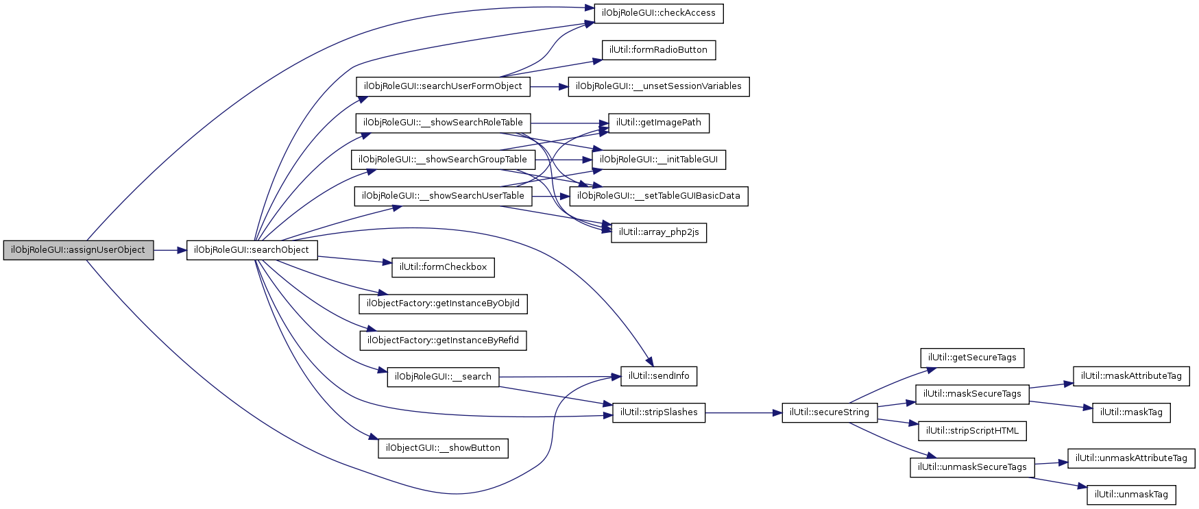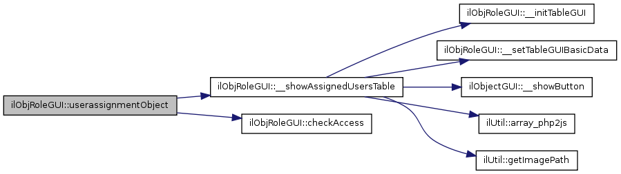 Here is the call graph for this function:| ilObjRoleGUI::userassignmentObject | ( | ) |
