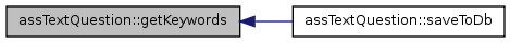 Here is the call graph for this function:| assTextQuestion::setKeywords | ( | $ | a_keywords | ) |