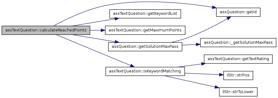 Here is the call graph for this function:| assTextQuestion::calculateReachedPoints | ( | $ | active_id, | |