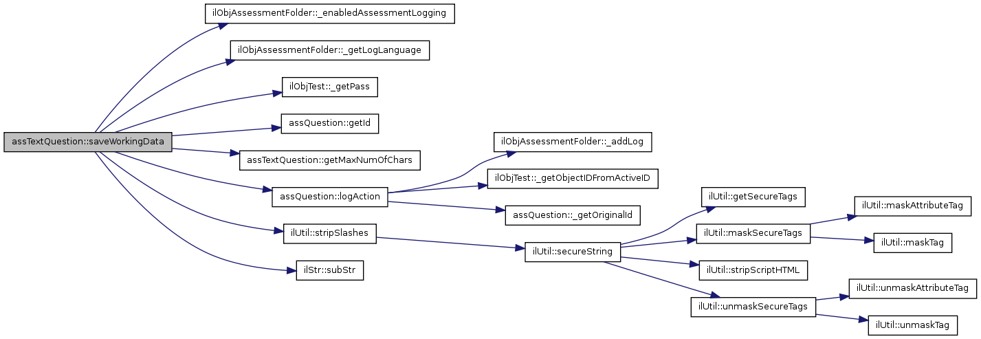 Here is the call graph for this function:| assTextQuestion::saveWorkingData | ( | $ | active_id, | |