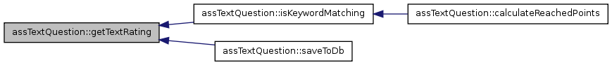 Here is the call graph for this function:| assTextQuestion::setTextRating | ( | $ | a_text_rating | ) |
