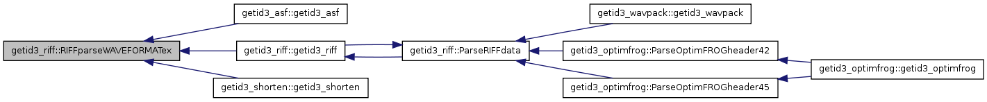 Here is the caller graph for this function:| getid3_riff::RIFFparseWAVEFORMATex | ( | $ | WaveFormatExData | ) |