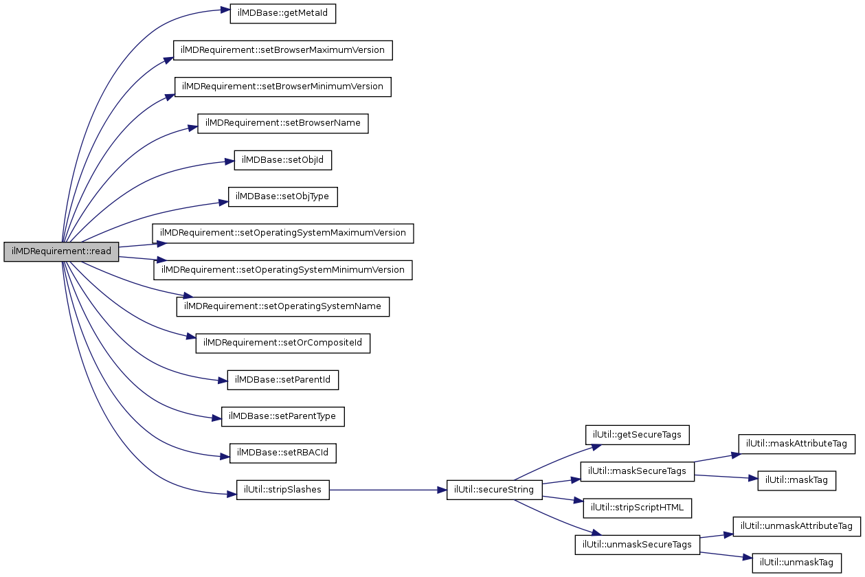 Here is the call graph for this function:| ilMDRequirement::read | ( | ) |