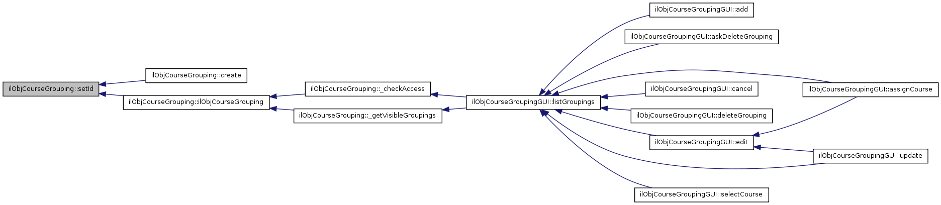 Here is the caller graph for this function:| ilObjCourseGrouping::setId | ( | $ | a_id | ) |