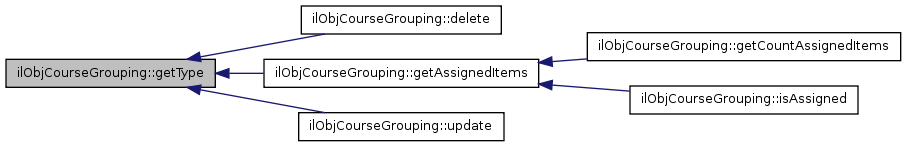 Here is the caller graph for this function:| ilObjCourseGrouping::getType | ( | ) |
