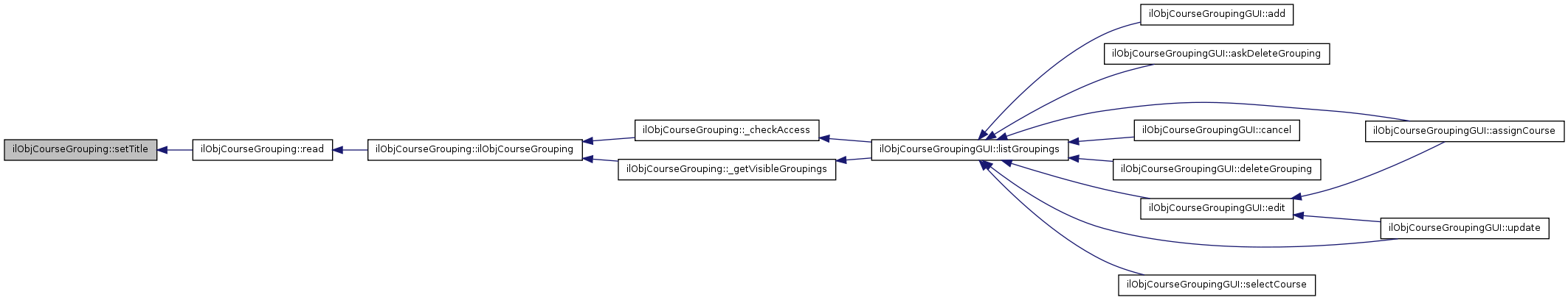 Here is the caller graph for this function:| ilObjCourseGrouping::setTitle | ( | $ | a_title | ) |