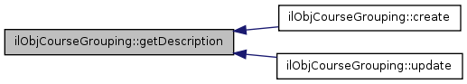 Here is the call graph for this function:| ilObjCourseGrouping::getDescription | ( | ) |