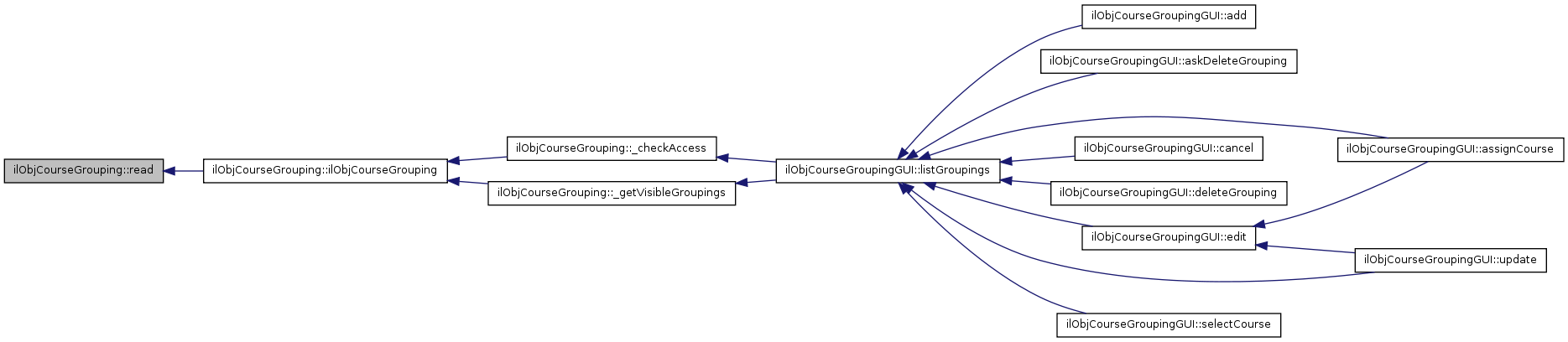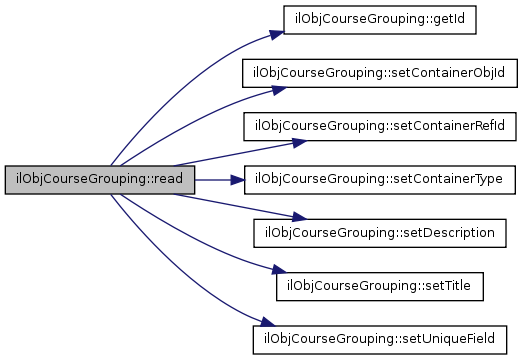 Here is the call graph for this function:| ilObjCourseGrouping::read | ( | ) |
