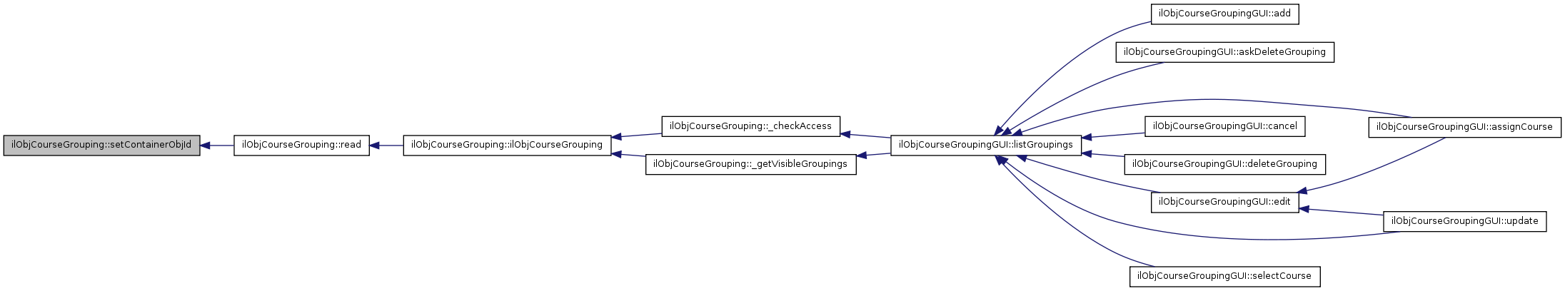Here is the caller graph for this function:| ilObjCourseGrouping::setContainerObjId | ( | $ | a_obj_id | ) |