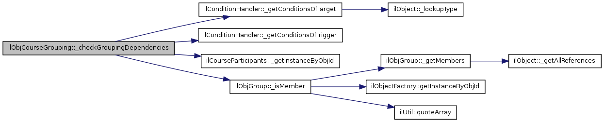 Here is the caller graph for this function:| ilObjCourseGrouping::_checkCondition | ( | $ | trigger_obj_id, | |