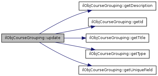 Here is the caller graph for this function:| ilObjCourseGrouping::update | ( | ) |