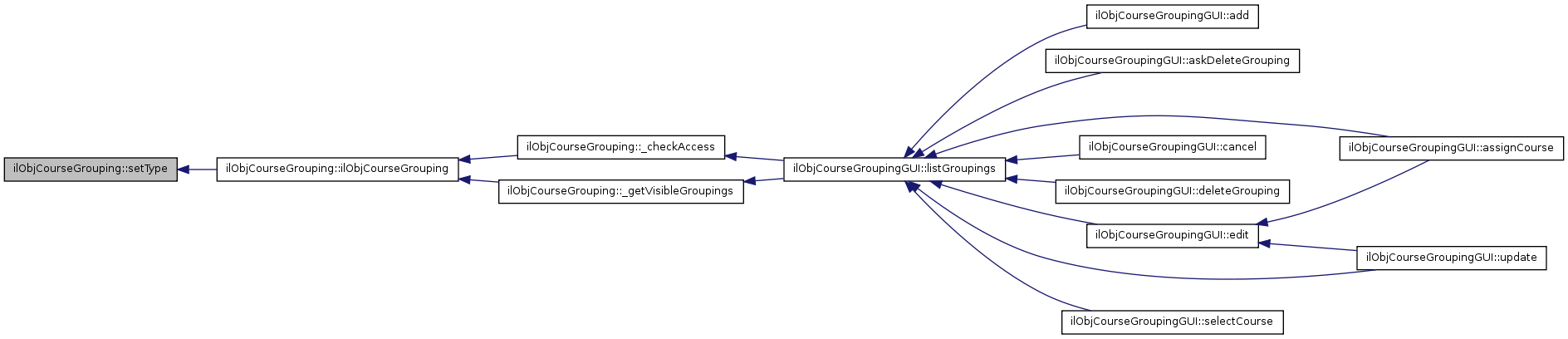 Here is the caller graph for this function:| ilObjCourseGrouping::setType | ( | $ | a_type | ) |