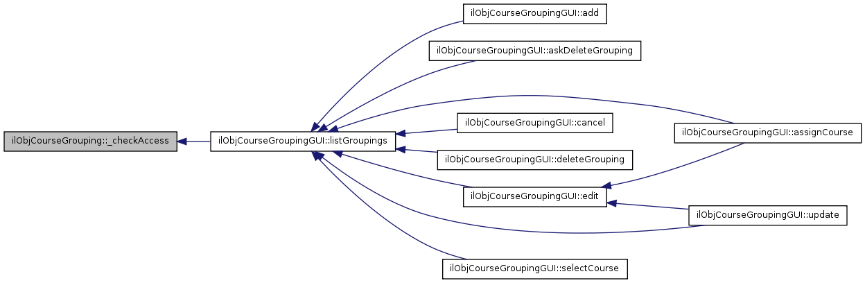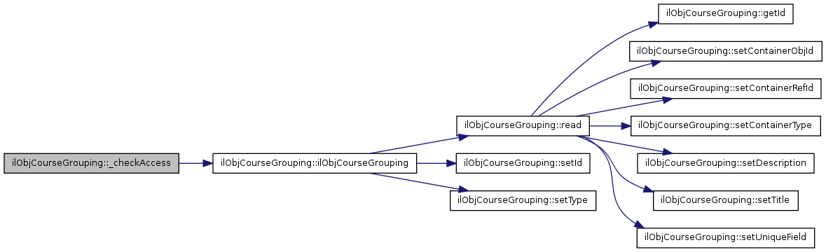 Here is the caller graph for this function:| ilObjCourseGrouping::_checkAccess | ( | $ | grouping_id | ) |