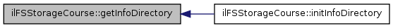 Here is the call graph for this function:| ilFSStorageCourse::initInfoDirectory | ( | ) |