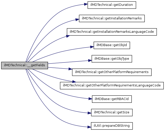 Here is the call graph for this function:| ilMDTechnical::__getFields | ( | ) |
